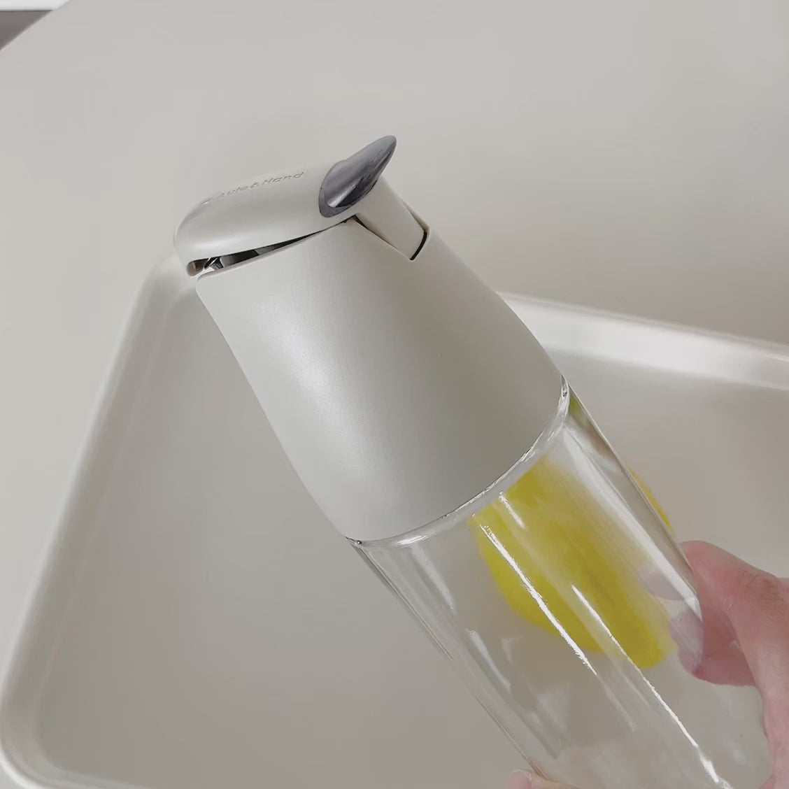 This Ivory Oil Dispenser features a sleek design with an easy-to-use automatic opening and closing mechanism. Perfect for effortless pouring, this stylish bottle keeps your kitchen tidy while adding a touch of elegance to your countertop.